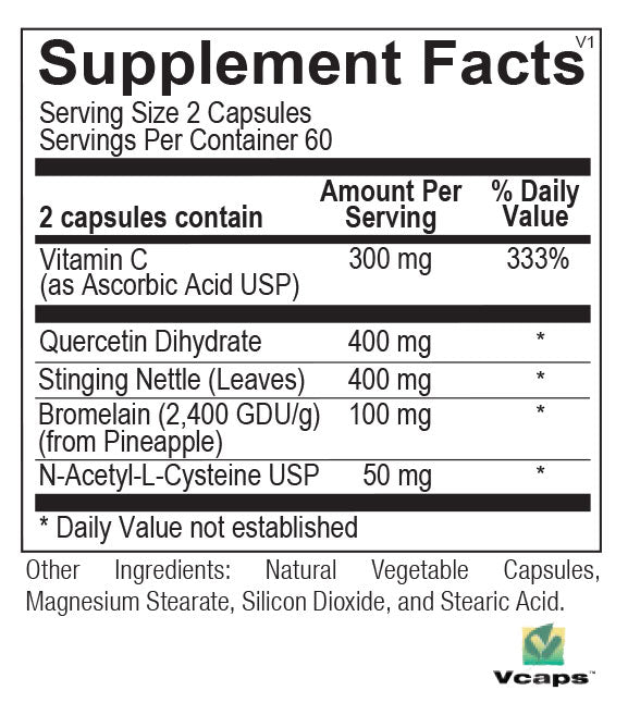 Seasonal Assist is one my most recommended products. It’s synergistic formula aids the respiratory system in multiple ways often eliminating needs for other seasonal allergy OTC agents. It works on the inflammatory processes as well as thinning the mucus.